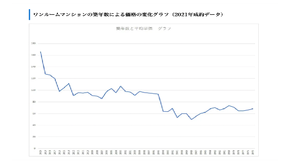 こちらは「1Rマンションの築年数による価格の変化」を表したグラフとなっています。