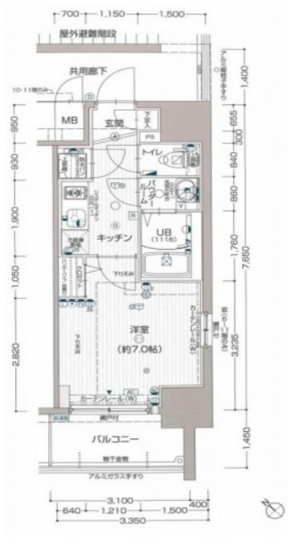 その他費用 -円 間取り 1K 専有面積 24.48㎡(壁芯) バルコニー -㎡
