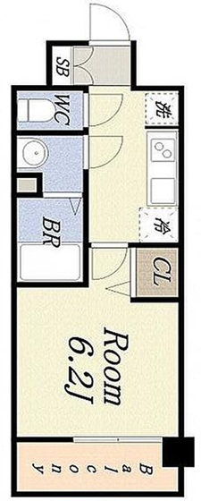 その他費用 -円 間取り 1K 専有面積 22.04㎡(壁芯) バルコニー -㎡