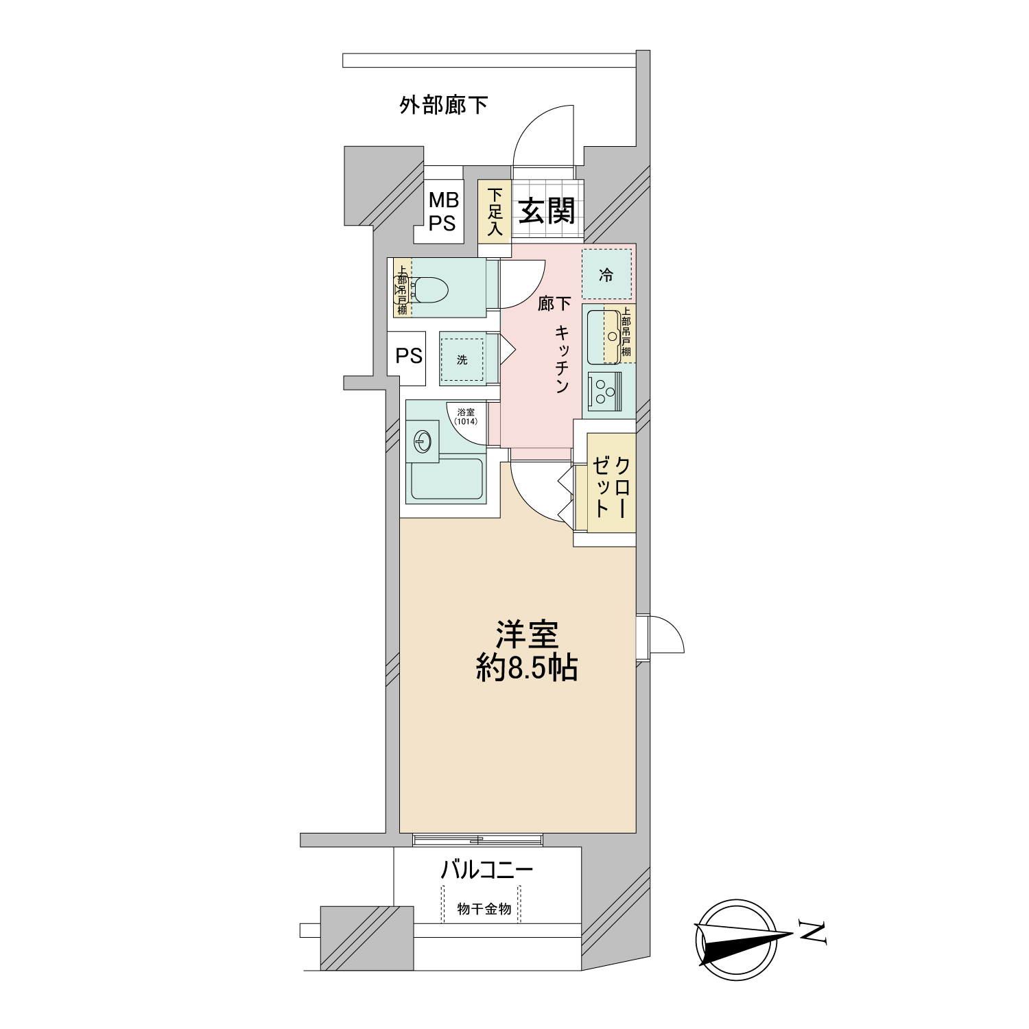| その他費用 | -円 | 間取り | 1K | 専有面積 | 27.20㎡(壁芯) | バルコニー | 3.91㎡ |