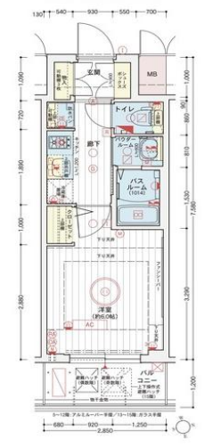 その他費用 -円 間取り 1K 専有面積 21.47㎡(壁芯) バルコニー -㎡