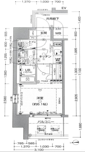 | その他費用 | -円 | 間取り | 1K | 専有面積 | 22.01㎡(壁芯) | バルコニー | 3.88㎡ |