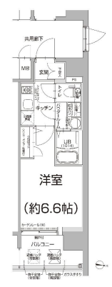 | その他費用 | -円 | 間取り | 1K | 専有面積 | 22.65㎡(壁芯) | バルコニー | 4.8㎡ |