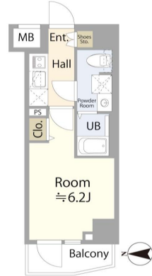 その他費用 -円 間取り 1K 専有面積 21.23㎡(壁芯) バルコニー 2.86㎡