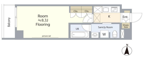 その他費用 -円 間取り 1K 専有面積 22.61㎡(壁芯) バルコニー -㎡