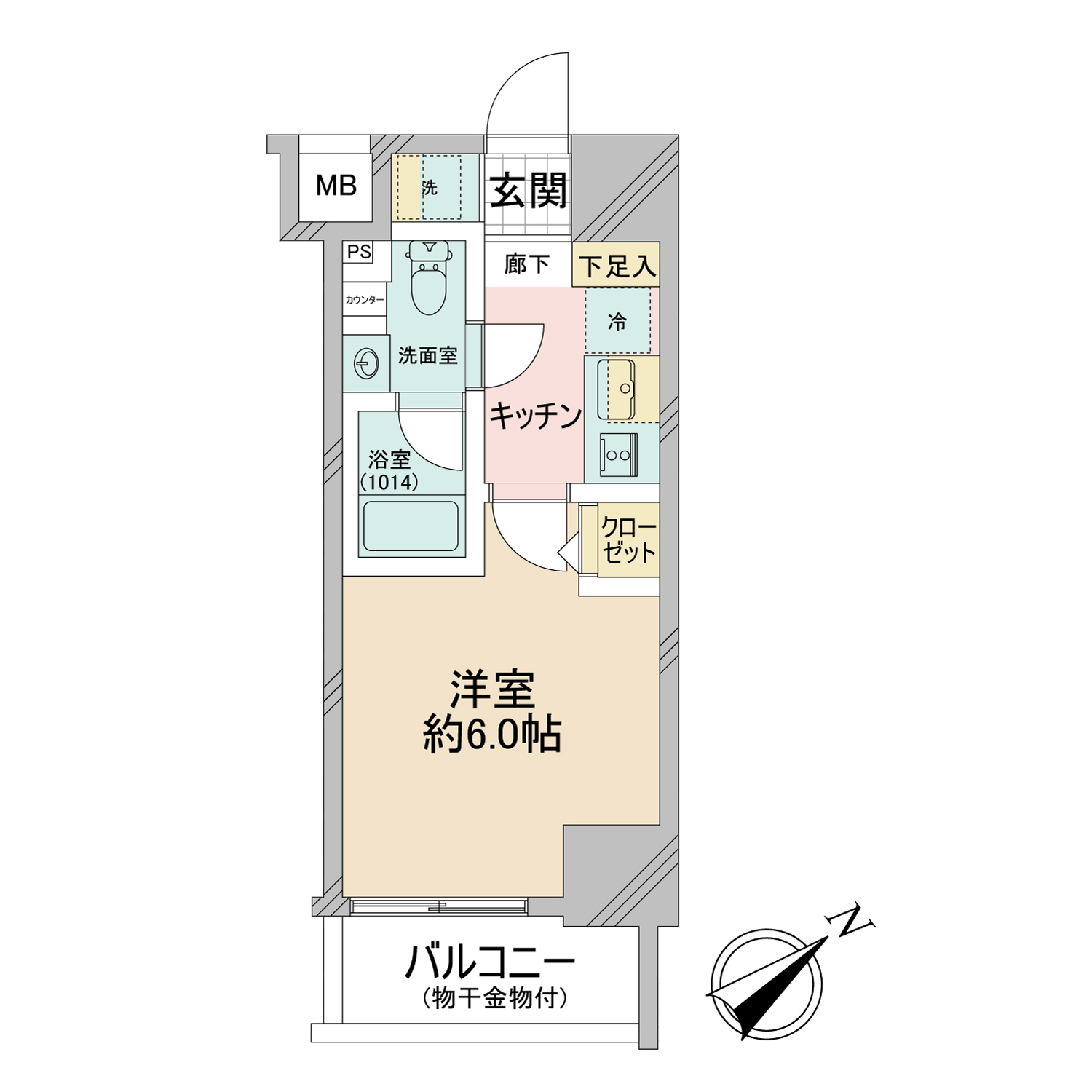 | その他費用 | ‐円 | 間取り | 1K | 専有面積 | 20.70㎡(壁芯) | バルコニー | 3.54㎡ |