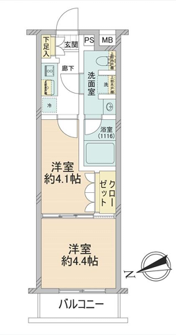 | その他費用 | ‐円 | 間取り | 2K | 専有面積 | 26.68㎡(壁芯) | バルコニー | 3.19㎡ |