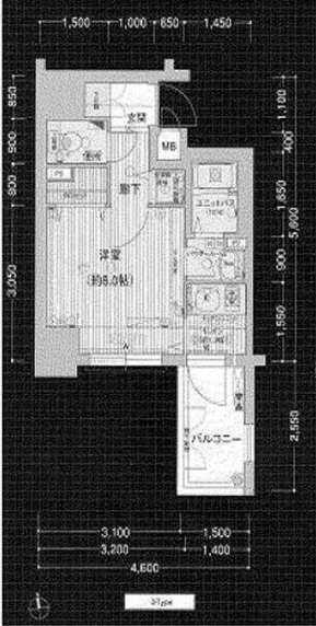 | その他費用 | -円 | 間取り | 1K | 専有面積 | 22.87㎡(壁芯) | バルコニー | 3.82㎡ |