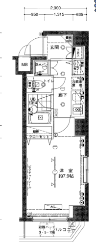 | その他費用 | -円 | 間取り | 1K | 専有面積 | 24.67㎡(壁芯) | バルコニー | 2.56㎡ |