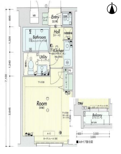 | その他費用 | -円 | 間取り | 1K | 専有面積 | 25.56㎡(壁芯) | バルコニー | 3.9㎡ |