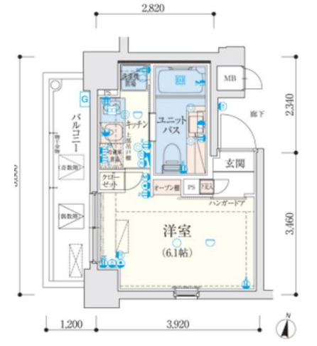 その他費用 ‐円 間取り 1K 専有面積 20.07㎡(壁芯) バルコニー 6.09㎡