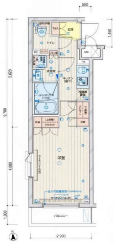 その他費用 -円 間取り 1K 専有面積 27.33㎡(壁芯) バルコニー 2.90㎡