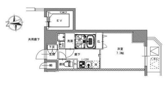 | その他費用 | -円 | 間取り | 1K | 専有面積 | 26.88㎡(壁芯) | バルコニー | -㎡ |