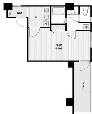 その他費用 -円 間取り 1K 専有面積 25.77㎡(壁芯) バルコニー -㎡