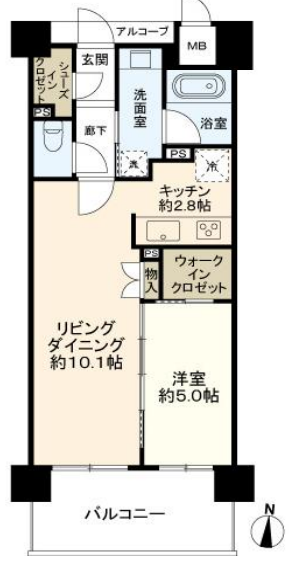 | その他費用 | -円 | 間取り | 1LDK | 専有面積 | 44.49㎡(壁芯) | バルコニー | 9.20㎡ |