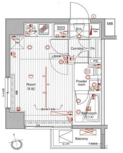 | その他費用 | -円 | 間取り | 1R | 専有面積 | 22.75㎡(壁芯) | バルコニー | 2.55㎡ |