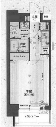 その他費用 -円 間取り 1K 専有面積 22.91㎡(壁芯) バルコニー -㎡