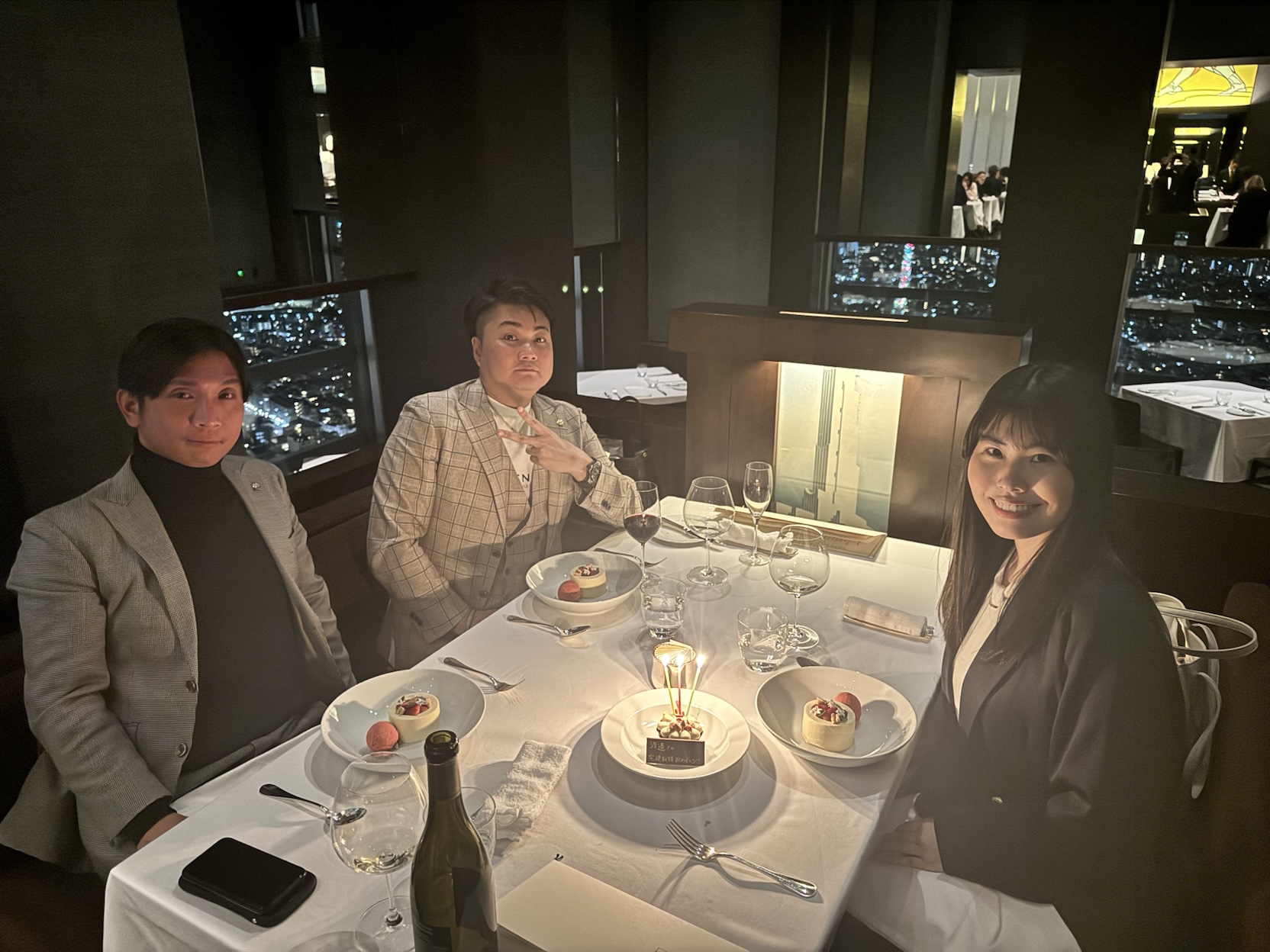 先日、宅建試験に合格したお祝いとして社長と副社長にディナーへ連れて行っていただいたのでその時の様子を載せております!
